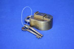 | 南京錠 鍵とは錠を開ける道具です。鍵と錠はペアになっているものです。ところが、錠 がパズルになると、これを開けるために錠は使いません。自分で仕掛けを見つけて 錠をあけます。h008の錠は財布の中にはいっている鍵で開けます。さてどのよう にして開けると良いのでしょう。 |